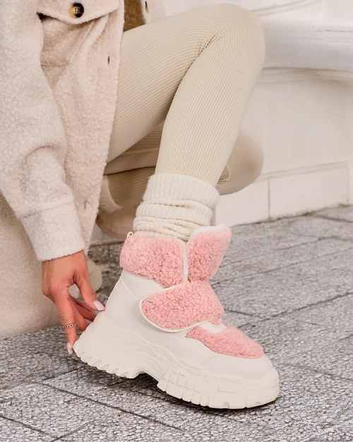 - Brezčasni ženski snežni škornji. Zgornji del je izdelan iz ekološkega usnja z vložki a'la ovčja koža. Izolacija v obliki krzna v notranjosti, čevlji imajo zapiranje na velcro. Idealni za hladnejšo sezono!