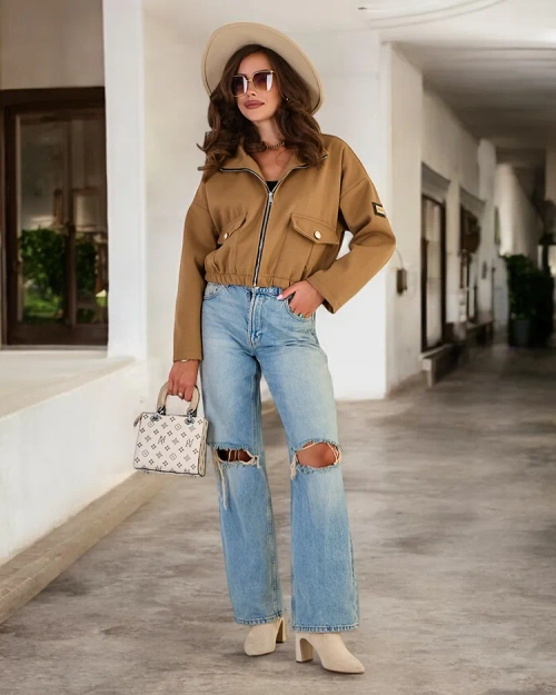 - Elegantna ženska jakna bomber. Model z dolgimi rokavi, ima zapiranje na zadrgo in dva žepa. Jakna ima podlogo. Morate jo imeti v tej sezoni! OPOMBA: Natančnost meritev (+/-) 1 cm.