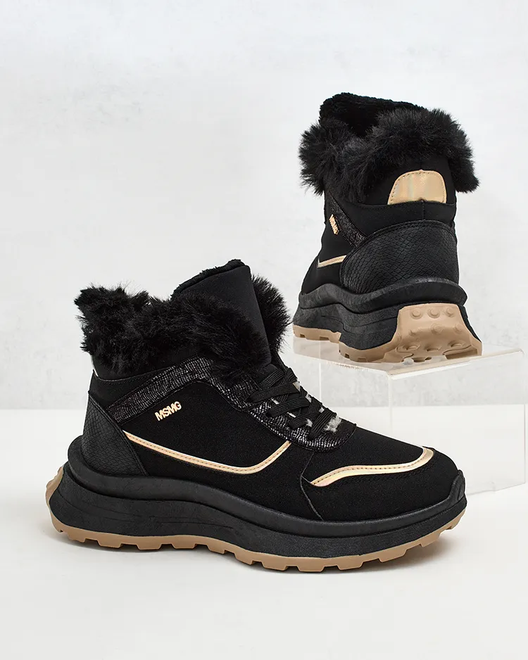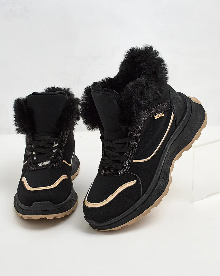 • Športne superge za ženske z debelejšim podplatom. Zgornji del z vezalkami, izdelan iz okolju prijaznega nubuka. Notranjost v celoti izolirana s krznom. Odlične za športne obleke!