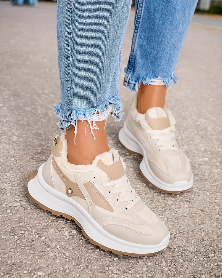 - Ženske izolirane športne superge na debelejšem podplatu. Zgornji del z vezalkami iz semiša iz ekološkega usnja z elementi iz ekološkega usnja. V notranjosti mehko krzno. Super dodatek k vašim zimskim priložnostnim oblačilom!