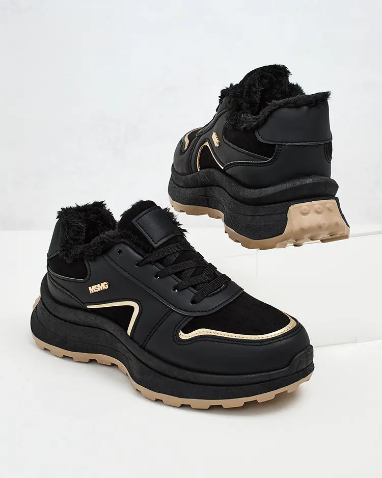 - Ženske izolirane športne superge na debelejšem podplatu. Zgornji del z vezalkami iz ekološkega semiša z elementi iz ekološkega usnja. V notranjosti mehko krzno. Super dodatek k vašim zimskim priložnostnim oblačilom!