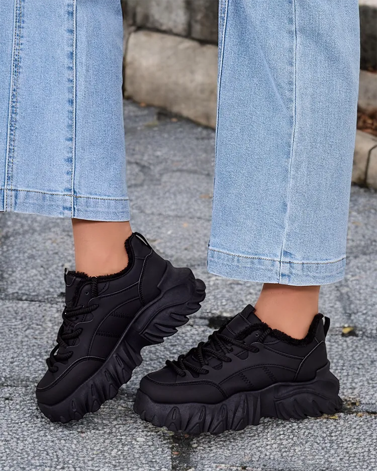 • Ženski izolirani športni čevlji tipa superge z debelejšim podplatom. Zgornji del z vezalkami iz matiranega ekološkega usnja. V notranjosti mehko krzno. Super dodatek k vašim zimskim priložnostnim oblačilom!