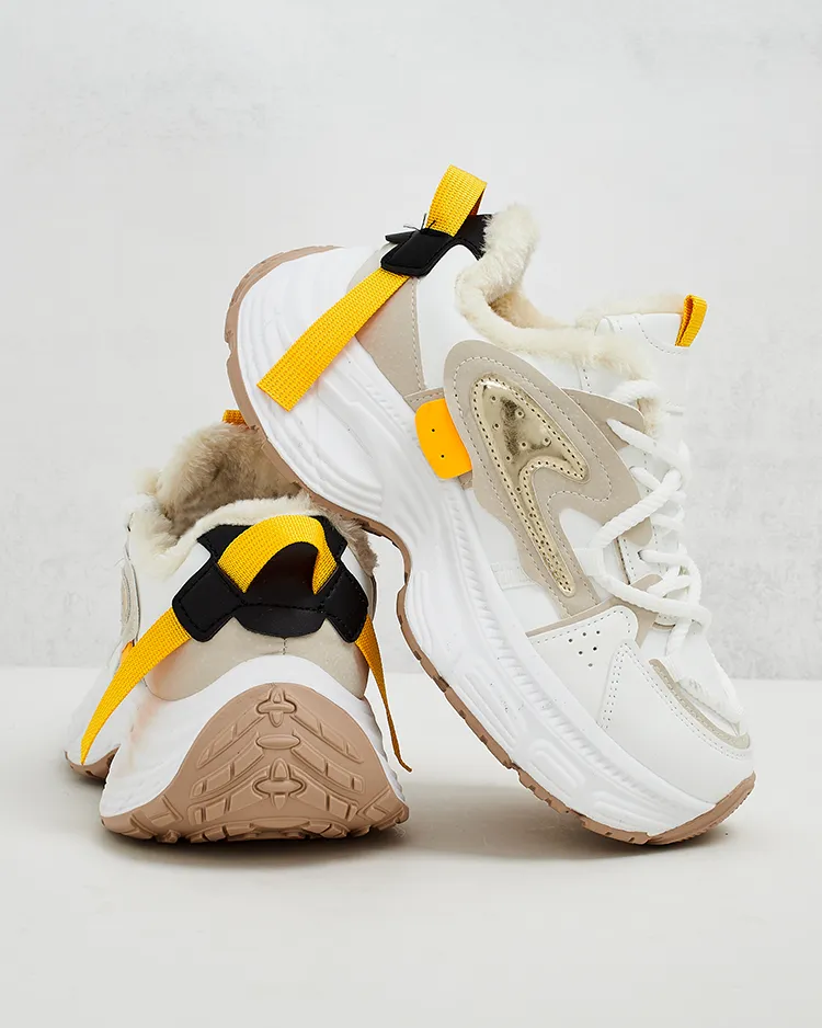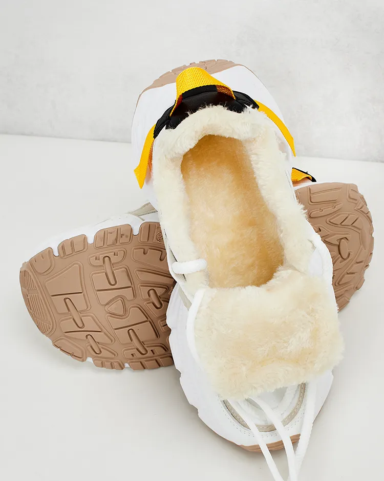 - Ženske izolirane športne superge na debelejšem podplatu. Zgornji del z vezalkami iz ekološkega semiša z elementi iz ekološkega usnja. V notranjosti mehko krzno. Super dodatek k vašim zimskim priložnostnim oblačilom!