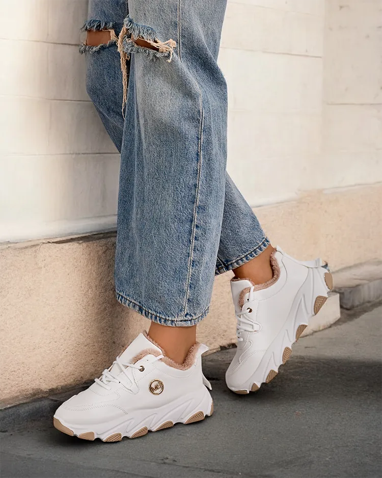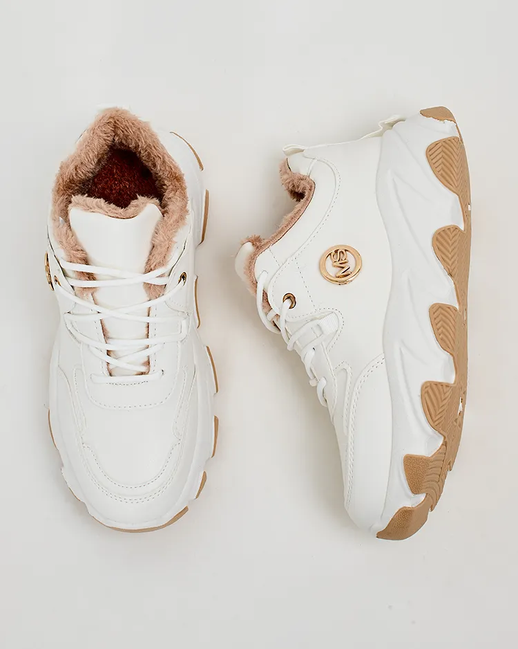 • Ženske izolirane športne superge na debelejšem podplatu. Zgornji del z vezalkami iz ekološkega usnja. V notranjosti mehko krzno. Super dodatek k vašim zimskim priložnostnim oblačilom!