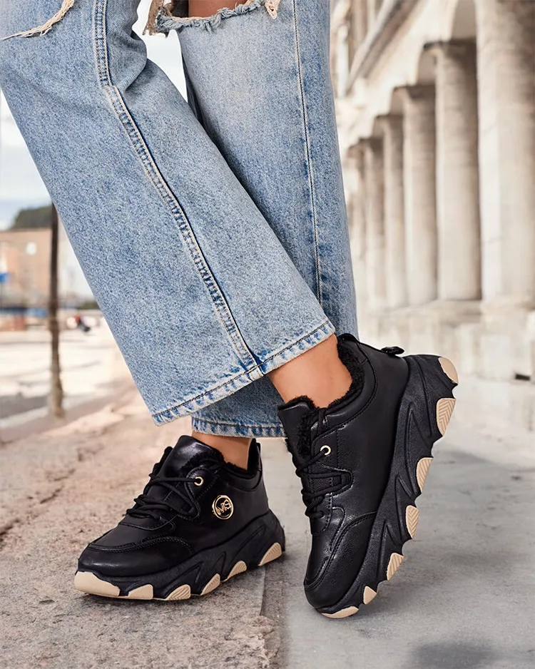 - Ženske izolirane športne superge na debelejšem podplatu. Zgornji del z vezalkami iz ekološkega usnja. V notranjosti mehko krzno. Super dodatek k vašim zimskim priložnostnim oblačilom!