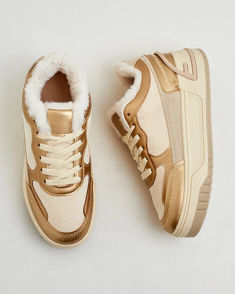 - Ženske izolirane športne superge na debelejšem podplatu. Zgornji del z vezalkami iz eko usnja in eko semiša. V notranjosti mehko krzno. Super dodatek k vašim zimskim priložnostnim oblačilom!