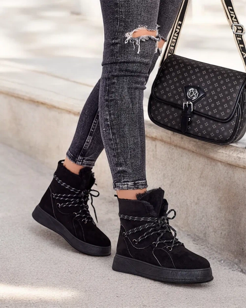- Ġliċ tas-sniegħ tal-nisa b'għot biz-suede imfaċċat ta' kulur eco. Fost il-furr intern delikata, il-ġilijiet li jisslupaw u jirbħu. Perfett għal xitwa!