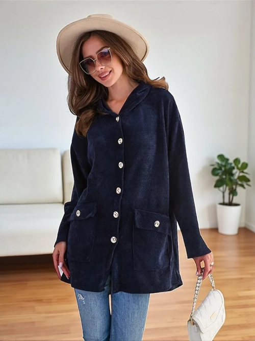 • Istaknite svoj stil s ugodnim, tankim džemperom koji očarava s nježnošću i elegancijom. Veliki, zlatni gumbi dodaju mu rafiniran karakter. Model ima kapuljaču i 2 džepa. Uparite ga sa svojim omiljenim hlačama!