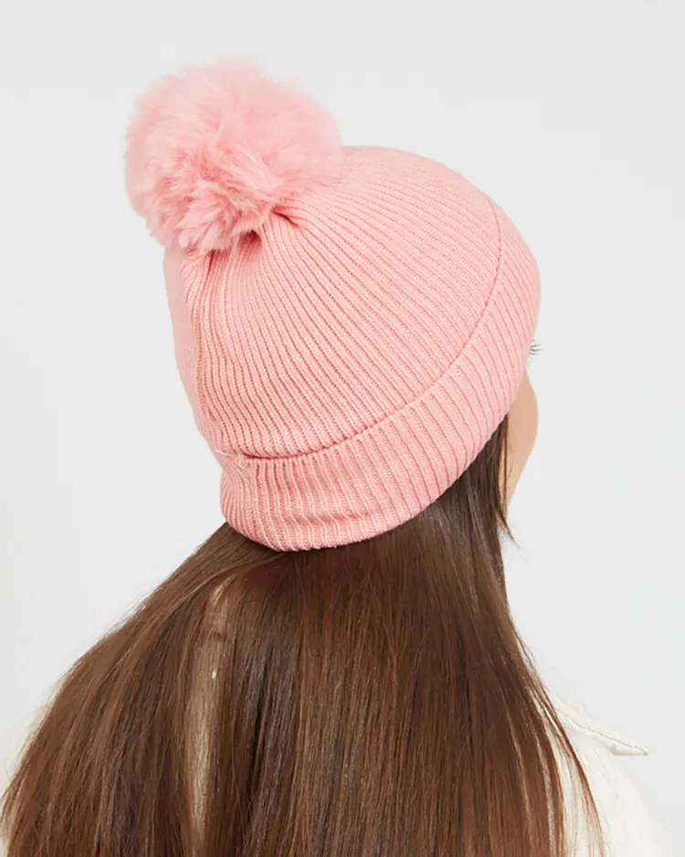 - Prekrasna ženska izolirana zimska kapa. Model s mekanim krznenim oblogom, ukrašen s pahuljastim pompom. Savršeno za hladne i zimske dane!