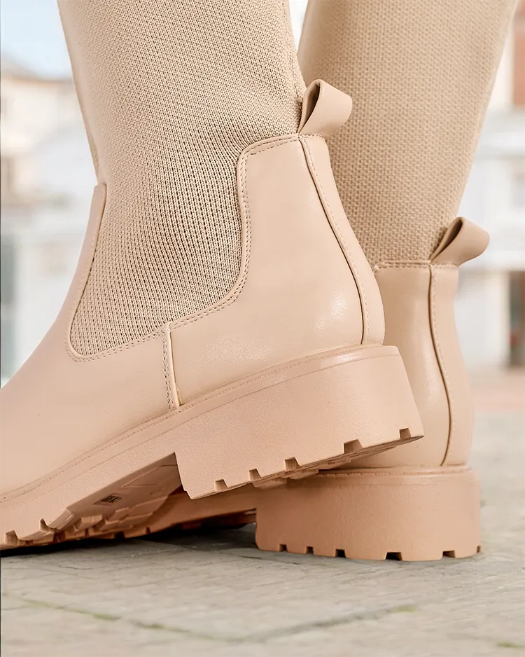 - Elegantne ženske čizme do kolena na debljem đonu. Gornji deo je napravljen od fleksibilnog materijala sa ušivcima od eko kože, unutrašnjost od materijala i krzneni uložak. Model koji se jednostavno oblači. Savršeno za svakodnevne jesenje kombinacije!