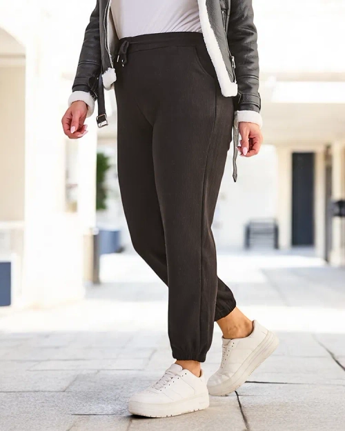 - Klasične ženske trenirke, izdelane iz mehkega in rebrastega materiala. Model s preprostim krojem, ima dva žepa in elastičen pas z vrvico. Idealna izbira za vsakodnevno nošenje!