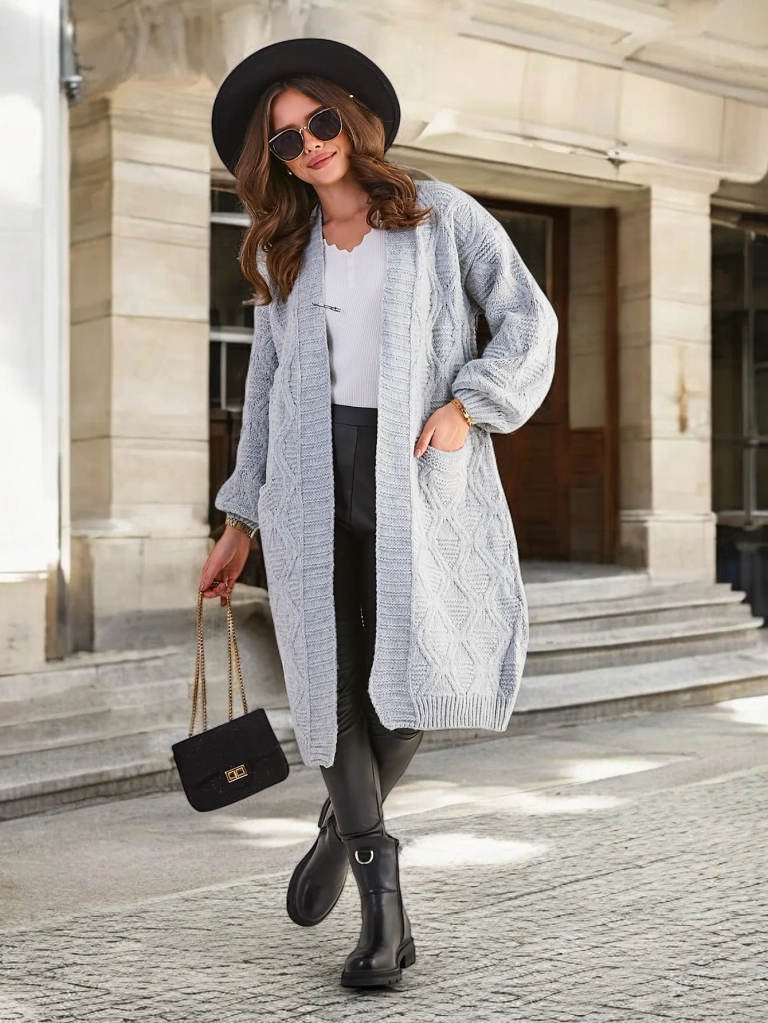 - Lijep kardigan za žene, izrađen od ugodnog pletiva. Kardigan bez kopčanja i bez kapuljače. Obavezni komad za vaš ormar kako biste upotpunili jesenske stilove! NAPOMENA: Točnost mjerenja (+/-) 1 cm.