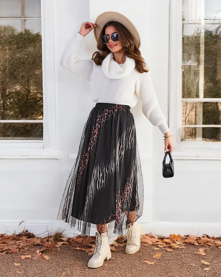 • Midi suknja za žene od tila izrađena od lagane tkanine. Model s podstavom, elastični pojas. Suknja će biti sjajna za jesen! NAPOMENA: Točnost mjerenja (+/-) 1 cm.
