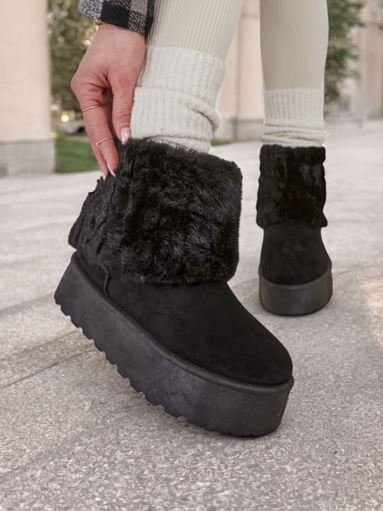 - Ženske zimske čizme sa gornjištem napravljenim od kombinacije eko kože i ugodnog krzna. Unutra, postavljene su krznom, cipele imaju slip-on gornji dio. Savršene za zimu!