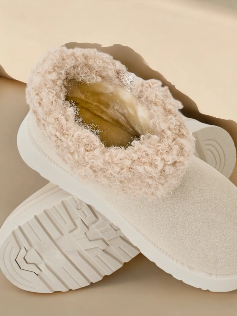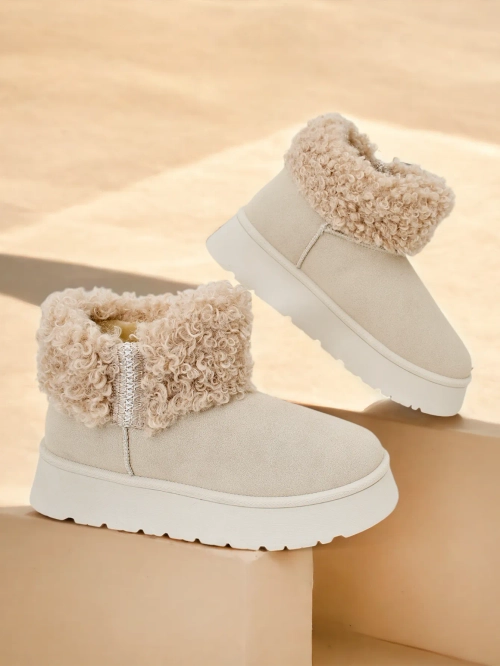 - Ženski snežni čevlji s peto iz umetnega usnja in vstavki iz krzna na vrhu pete. Notri je krzneni podloga, čevlji imajo zdrsno peto. Popolni za zimo!