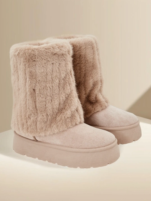 - Ženske zimske čizme s gornjištem od kombinacije eko-suede kože i ugodnog krzna. Unutrašnjost je s krznom, obuća ima slip-on gornjištem. Savršeno za zimu!