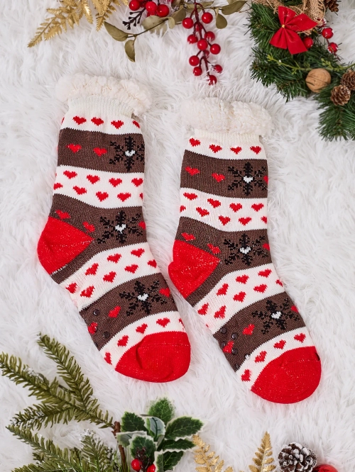 - Prekrasne debele ženske nogavice s božičnim vzorcem. Znotraj podložene s snežno belim, toplim krznom. Nogavice so popolne za hladnejše, zimske večere!
