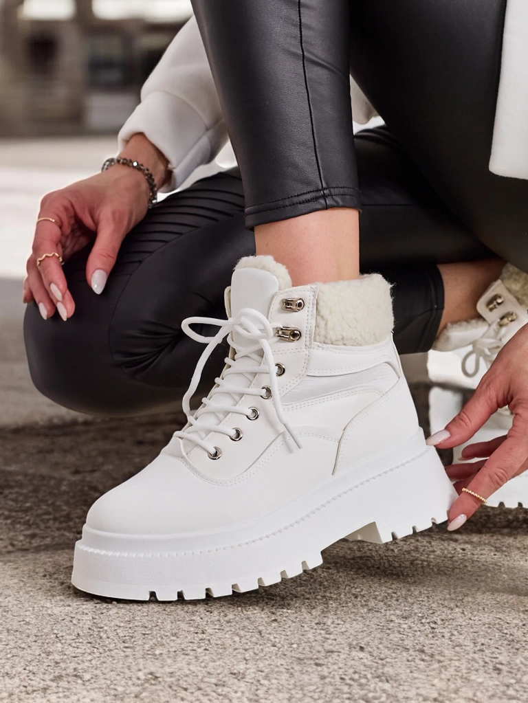 • Klasične ženske čizme za snijeg na debelom đonu. Gornji dio je napravljen od eko kože. Unutra, postava je u obliku krzna, cipele su vezane. Savršene za hladnije sezone!