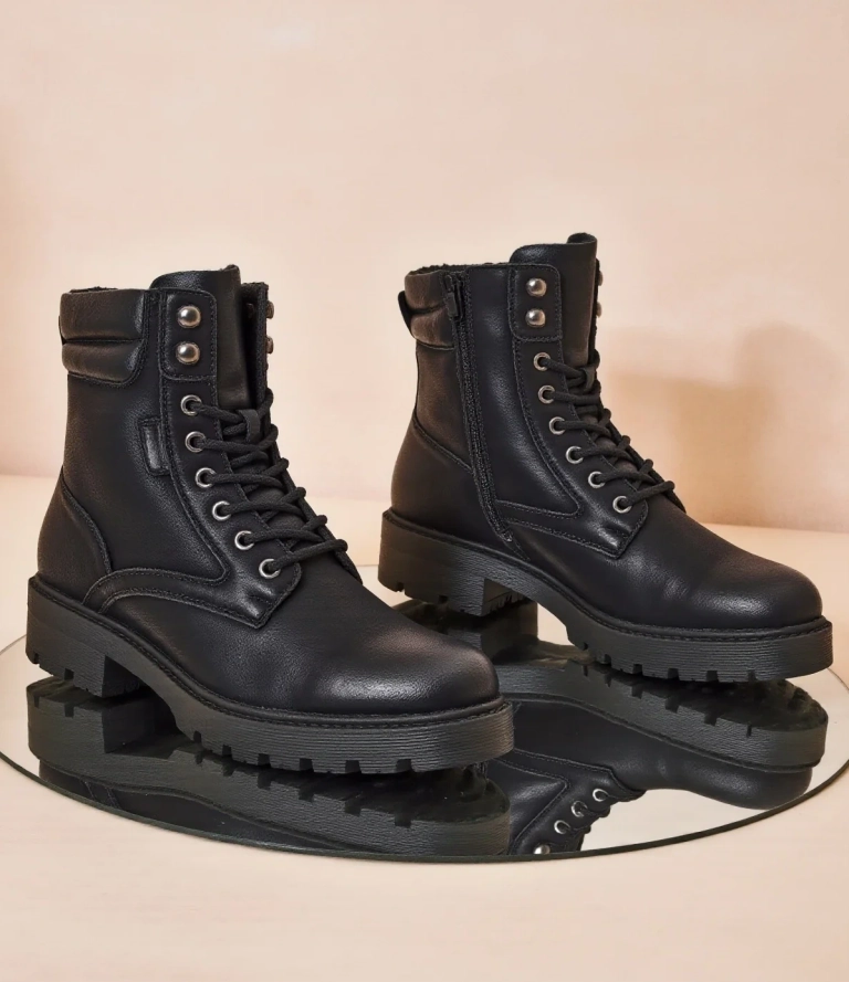 - Ženske radne čizme su jedinstvena obuća koja kombinuje stil i udobnost. Napravljene od ekološke kože i ispunjene mekim krznom. Model sa pertlanjem i patentnim zatvaranjem.