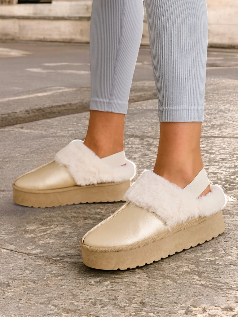 - Odlični ženski zimski snežni škornji na platformi brez pete. Zgornji del je izdelan iz eko usnja, notranjost pa je podložena s krznom. Popolna osnova za zimo!