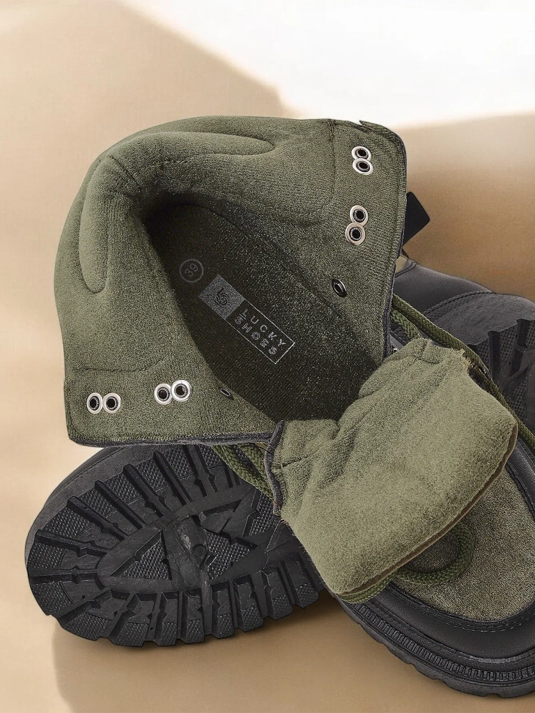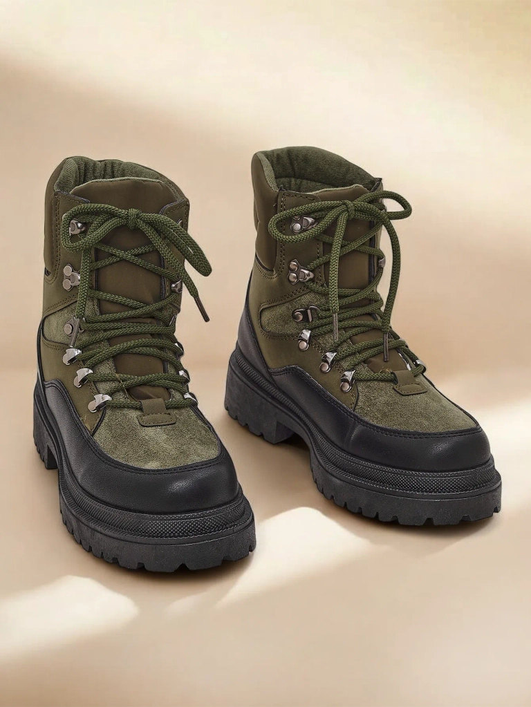 - Unikatne ženske trapper čizme, izrađene od kombinacije eko kože, mat eko kože i tkanine. Model ima pertlanu osovinu. Ispunjene su debljim pjenastim slojem i tkaninom unutra. Specifične cipele za loše vrijeme!