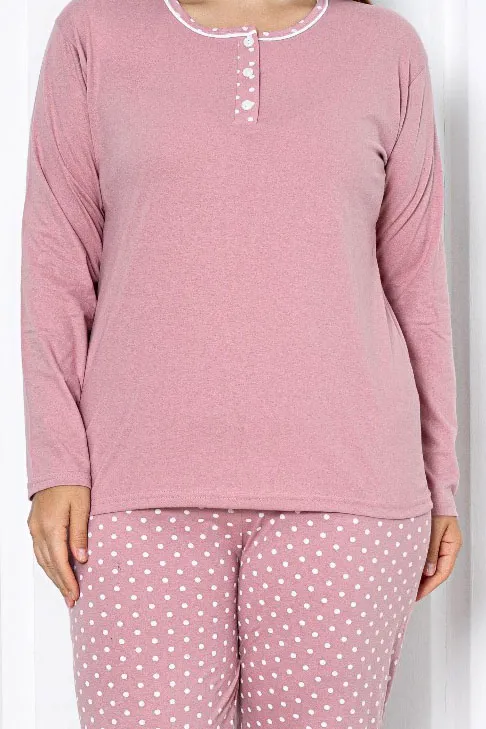 Royalfashion Ženske bombažne 2-delne pižame s pikami PLUS SIZE