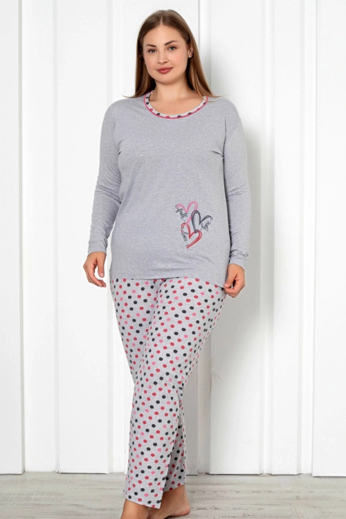 Royalfashion Ženske bombažne 2-delne pižame s pikastim vzorcem VELIKOST PLUS