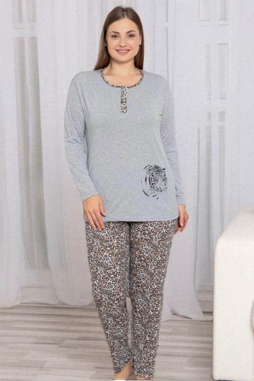 Royalfashion Sive ženske 2-delne pajamas z motivom leoparda VELIKOST PLUS