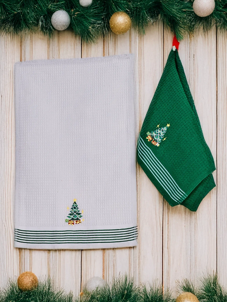 - Komplet bombažnih kopalniških brisač. Komplet vključuje: 2 kosa s dimenzijami 40 cm x 60 cm. Brisače bodo popolnoma odražale praznično vzdušje med božičem!