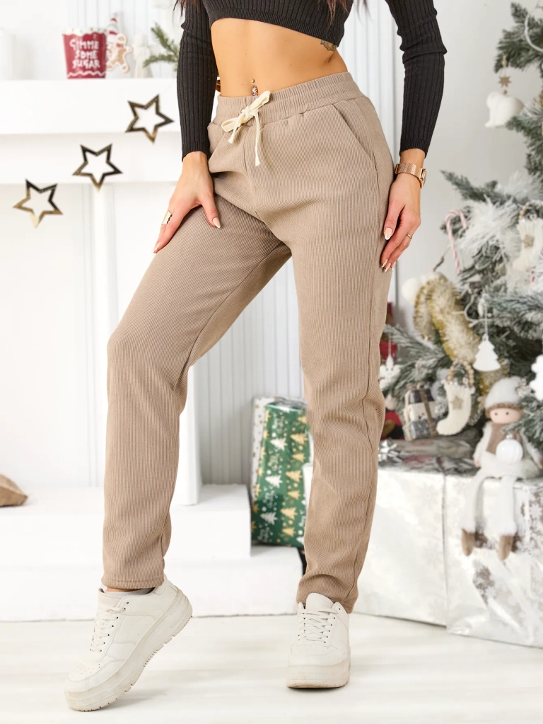 - Izolirane ženske trenirke izdelane iz mehkega materiala podobnega žimnici. Model z enostavnim krojem, s tremi žepi in elastičnim pasom z vrvico. Podložene z toplim polar flisom znotraj. Odlična izbira za vsakodnevno nošenje!