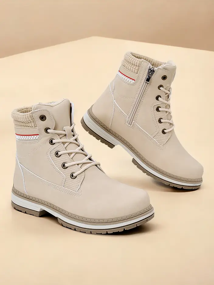 • Ženski pohodniški čevlji s vezalkami na zgornjem delu in stransko zadrgo. Material je okolju prijazno usnje. Notranjost škornjev je podložena s krznom. Popolni za zimo!