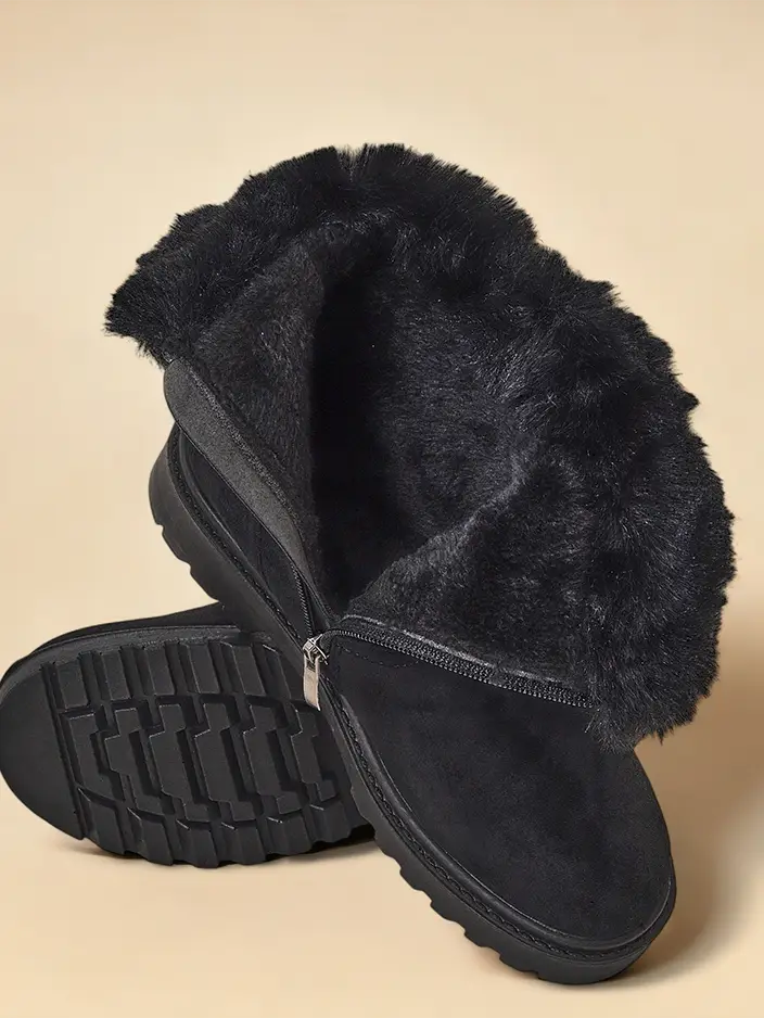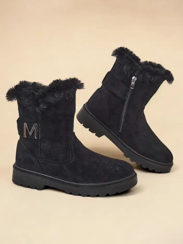 - Odlični ženski zimski škornji v slogu snežnih škornjev z ravno peto. Zgornji del je izdelan iz okolju prijaznega semiša, notranjost pa je podložena s krznom. Obutev se zapenja z zadrgo. Popolna osnova za zimo!