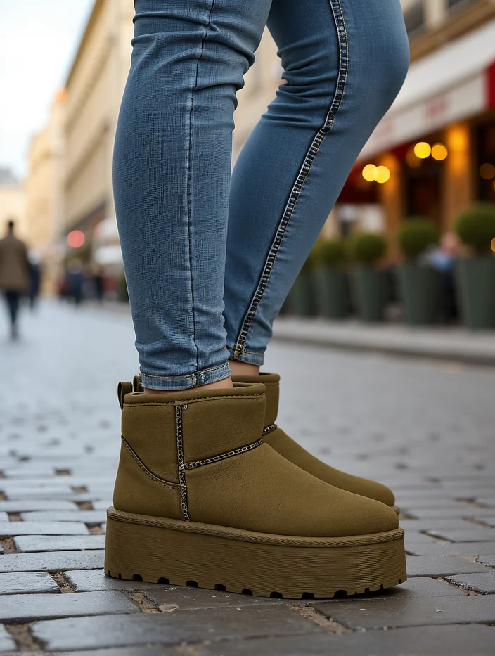 - Odlični ženski zimski platformni zimski škornji. Zgornji del je izdelan iz okolju prijaznega semiš usnja, notranjost pa je obložena s krznom. Popolna osnova za zimo!