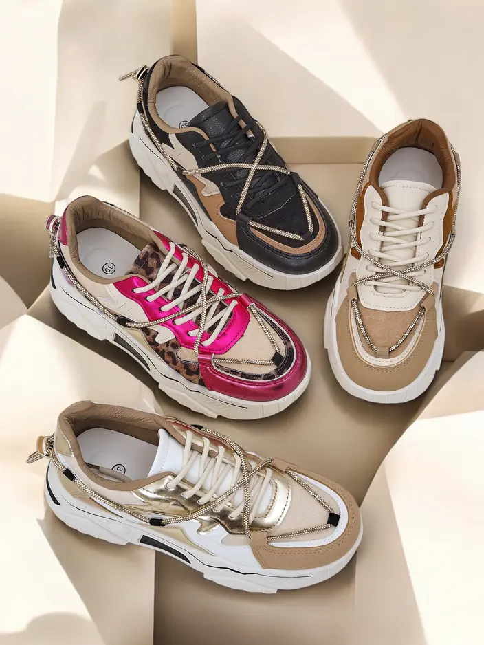 - Ženske superge s ravnim podplatom, popolna kombinacija stila in udobja. Obutev iz ekološke usnje. Vezeni model z dekorativnim vezanjem, ki vsebuje kristale. Idealno za aktivne posameznike!