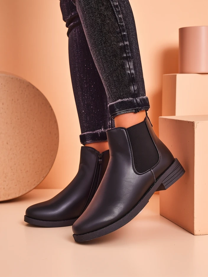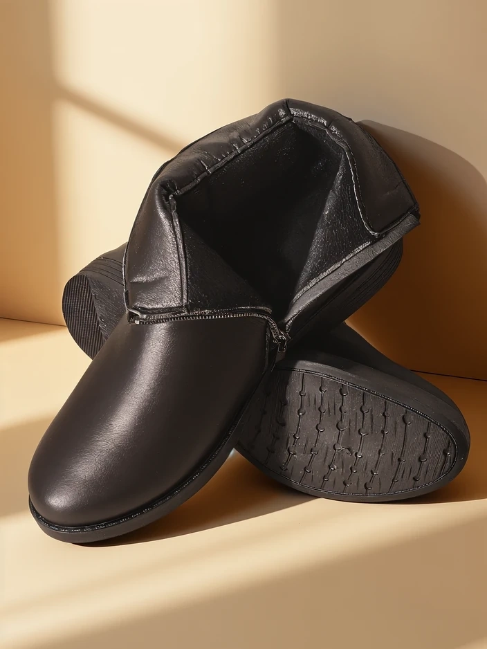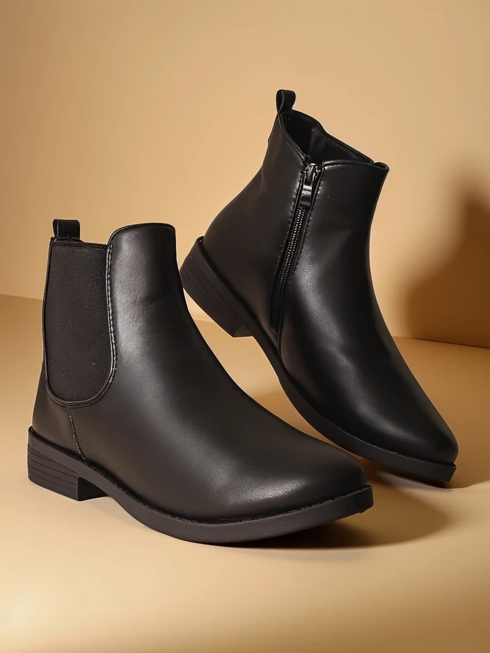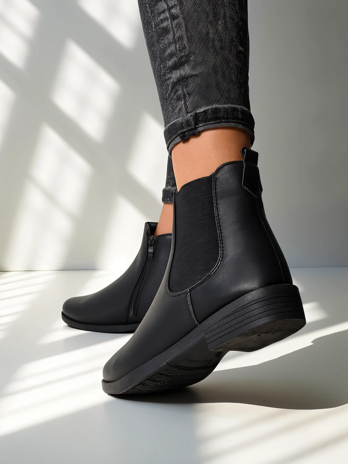 Te elegantne chelsea čevlje odlikuje klasičen dizajn in preprostost, kar jih naredi za odlično izbiro za različne priložnosti. Narejeni so iz visoko kakovostne umetne usnje, kar zagotavlja trajnost in enostavno nego. Elastični stranski deli iz materiala zagotavljajo udobno prileganje, medtem ko trdna podloga daje zaupanje pri koraku. Ti čevlji so idealni za pisarno, družabna srečanja ali vikend izhode. Enostavno se obujejo zahvaljujoč zanki na zadnji strani.