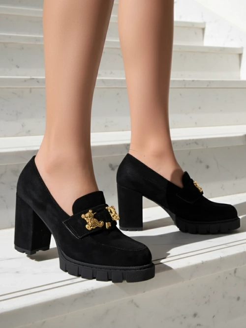 Osupljivi Črni Čevlji s Peto iz Semiš Eleganten in Moden