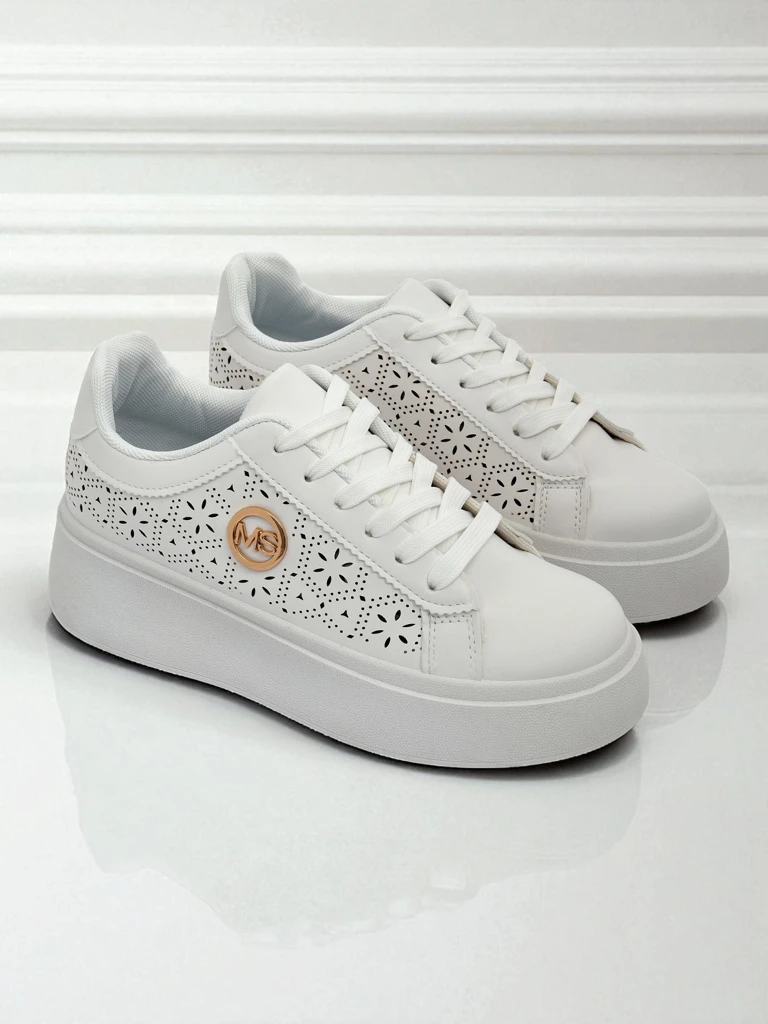 Ženski športni copati Aelia Royalfashion na platformi beli mrežasti ecru