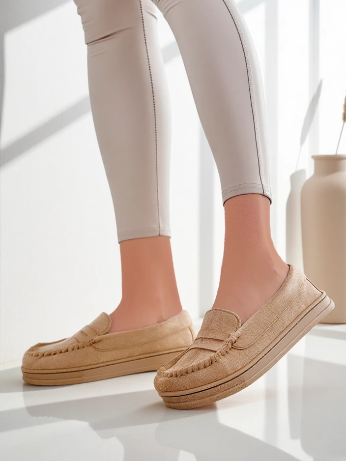 - Modne ženske mokasine s ravnim podplatom. Par je izdelan iz ekološkega semiša. Notranjost je podložena z mehkim materialom. Popolno za vsakdanje outfite!