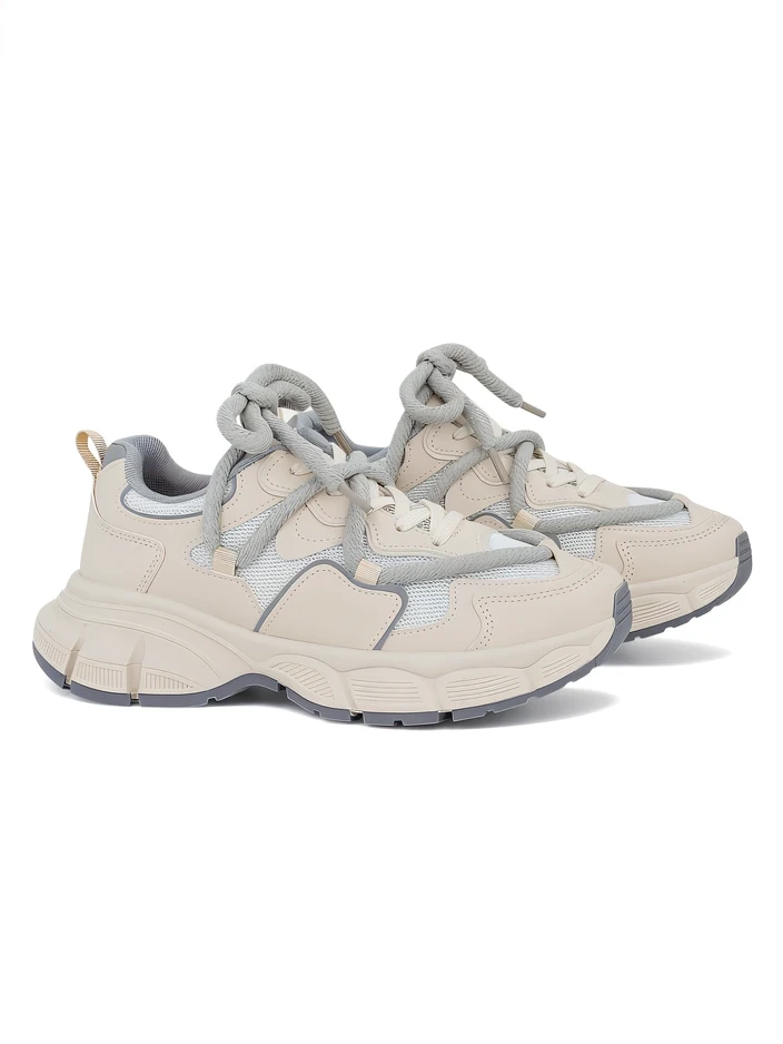 - Ženske športne čevlje iz eko-usnja in mrežastega materiala. Model z debelejšo podplatom. Zavezani zgornji del. Popolnoma se bodo prilegale vsakdanjim oblačilom!