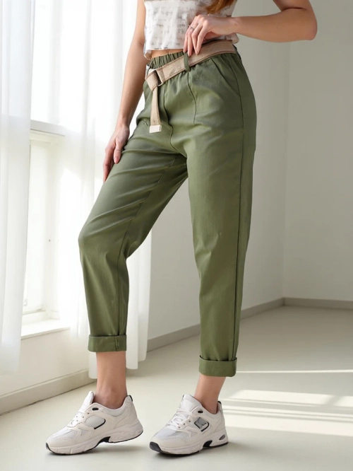Royalfashion Ženske ravne hlače iz viskoze z pasom