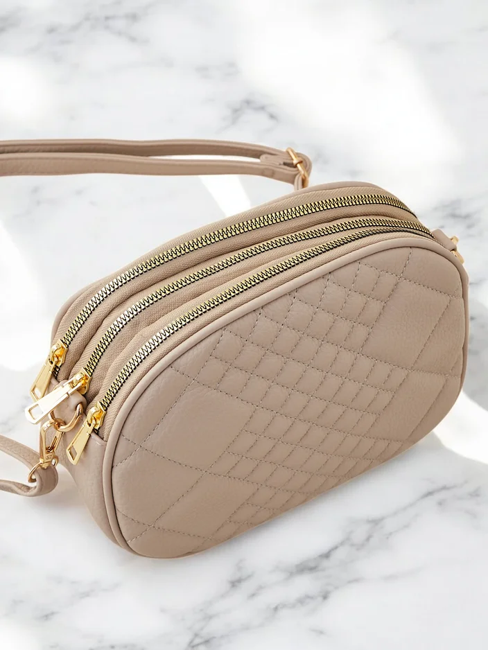 - Ženska ovalna torbica z zadrgo, izdelana iz ekološke usnje. Model ima 3 predale in en zunanji žep. Poleg tega je opremljena z odstranitvenim, nastavljivim pasom. Popolna za vsakodnevno uporabo!
