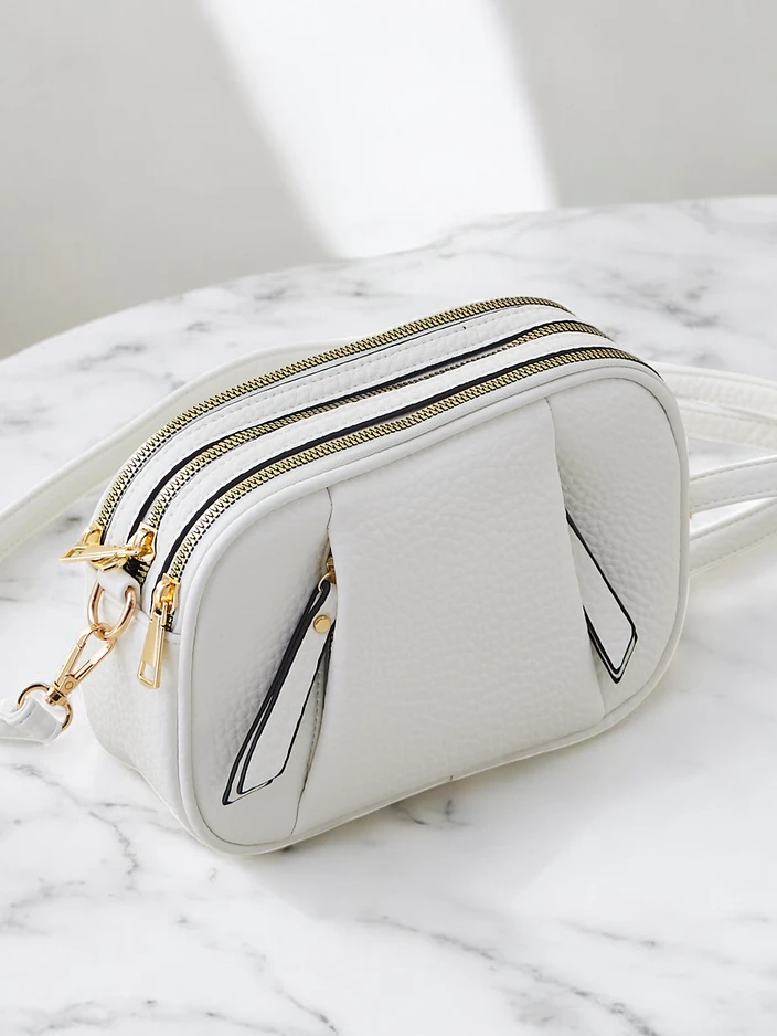 - Mala ženska torbica z zadrgo iz ekološke usnje. Model ima 3 predale in en žep. Dodatno ima snemljiv in nastavljiv trak. Popolna za vsakodnevno uporabo!