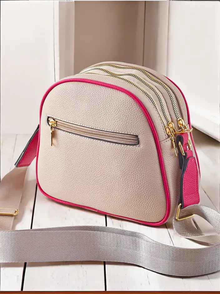 - Mala ženska torbica z zadrgo iz ekološke usnje z embosiranjem. Model ima 3 predale in zunanji žep. Poleg tega ima odstranljiv, nastavljiv trak. Popolna za vsakodnevno uporabo!