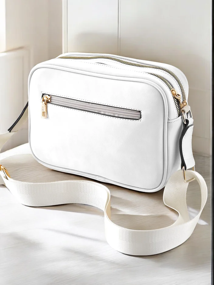 • Mala ženska torbica z zadrgo, narejena iz ekološkega usnja. Model ima 2 predelka in zunanji žep. Poleg tega ima odstranljiv, prilagodljiv pas. Popolno za vsakdanjo uporabo!