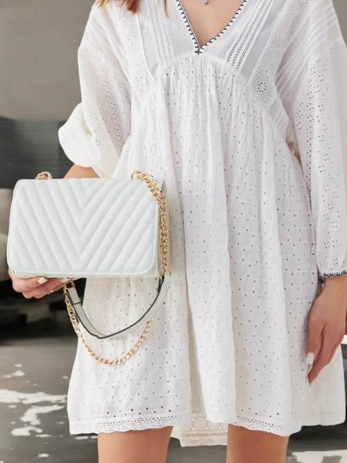 - Eleganten prešit majhen ženski torbici z magnetskim zapiranjem, izdelan iz ekološke usnje. Model ima 1 predel z razdelilnikom. Poleg tega ima lepo verigo. Popoln za vsakodnevno uporabo!