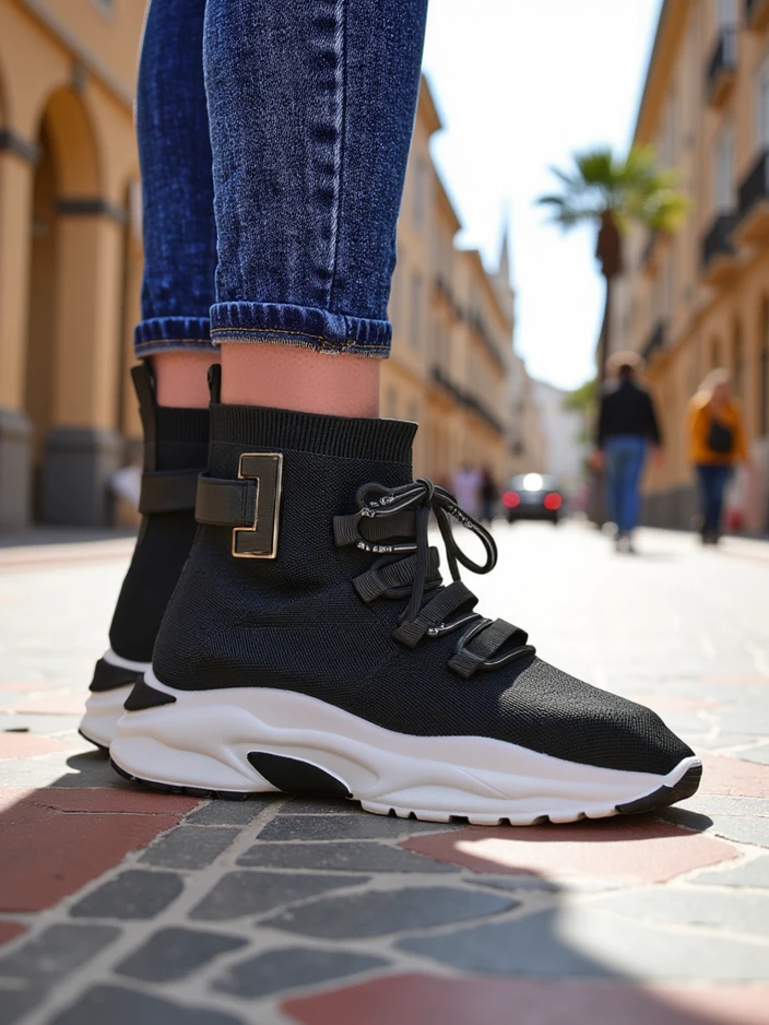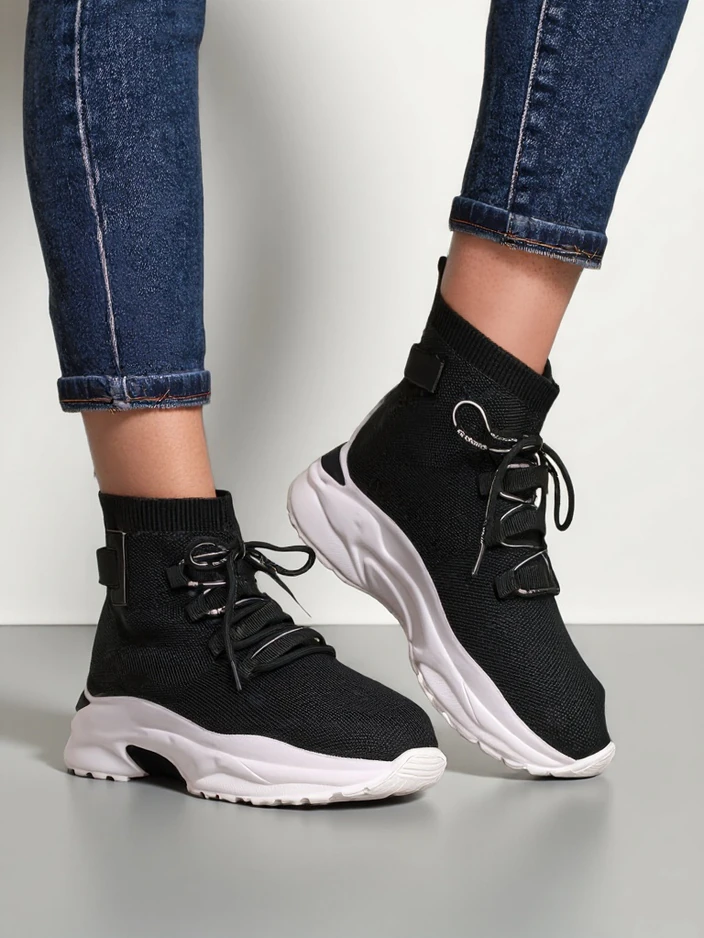 • Ženske superge z debeljimi podplati - popolna kombinacija sloga in udobja. Superge brez vezalk iz blaga. Dobra izbira za vsakodnevno uporabo!