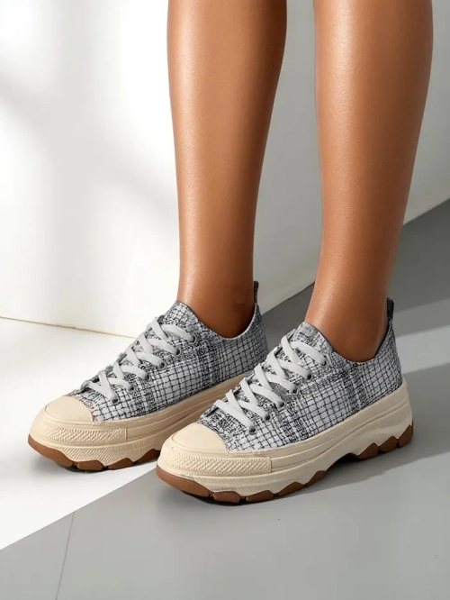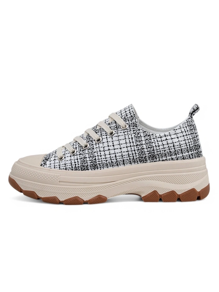 - Sodobne ženske superge iz tekstilnega materiala. Model na udobni platformi. Zgornji del je z vezalkami. Odlično za ustvarjanje vsakodnevnih kombinacij!