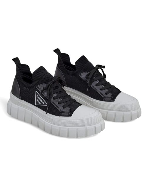- Elegantni ženski športni copati iz blaga. Model na udobni platformi. Zgornji del je na vezalke. Odlično za ustvarjanje sproščenih outfitov!