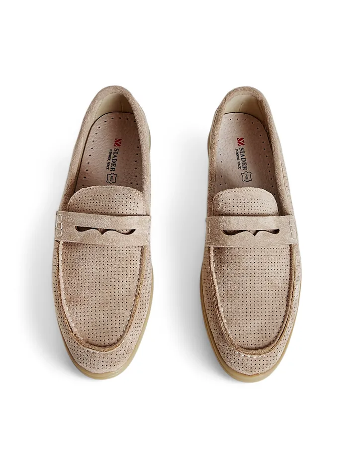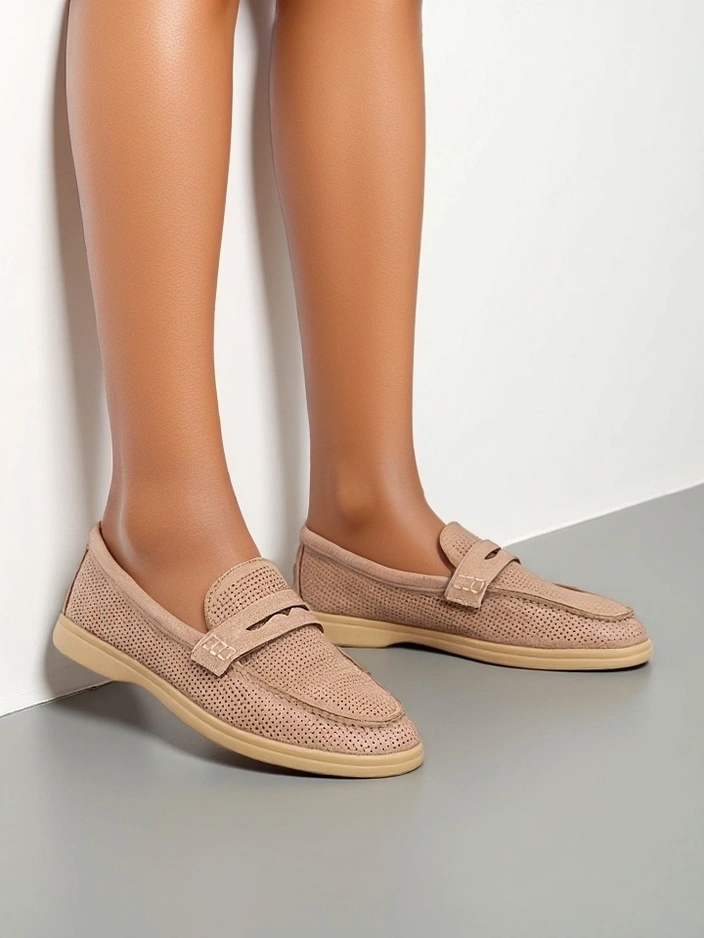 - Perforirani ženski mokasini z ravnim podplatom. Model je izdelan iz ekološke semiš usnje z podlogo iz naravne usnje. Idealen dodatek k vsakodnevnim oblačilom!