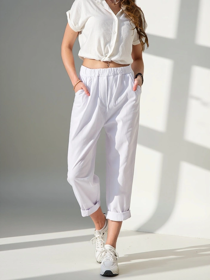 - Čudovite široke HAREM hlače iz lahkega blaga, model ima 2 žepa in elastičen pas. Obvezna oprema v vaši garderobi! OPOZORILO: Natančnost merjenja (+/-) 1 cm.